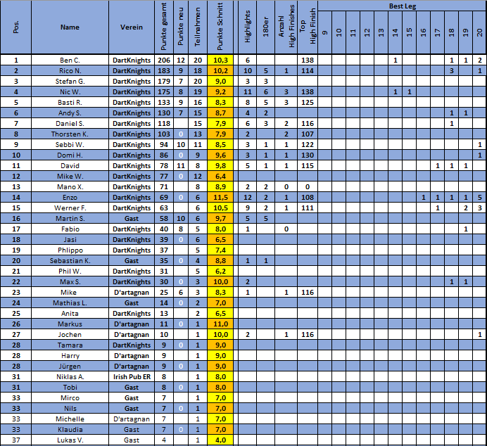 Die Wertungen aus den einzelnen Abenden werden summiert und am Ende des Jahres werden hier die Sieger gebührend belohnt:
